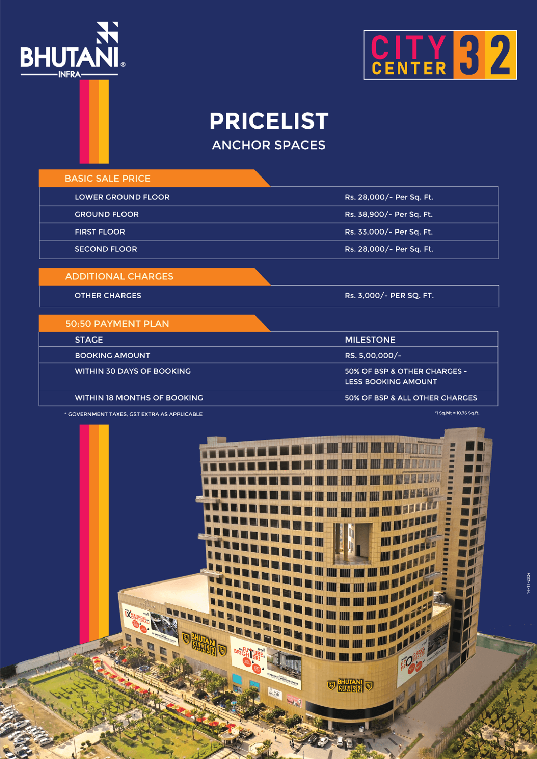 Strategically positioned in Sector 32, Bhutani City Centre 32 enjoys excellent connectivity and accessibility, making it a magnet for shoppers, diners, and investors. Its location in one of Noida's most dynamic neighborhoods ensures a steady footfall and positions it as a lucrative investment opportunity in Noida's flourishing real estate landscape.